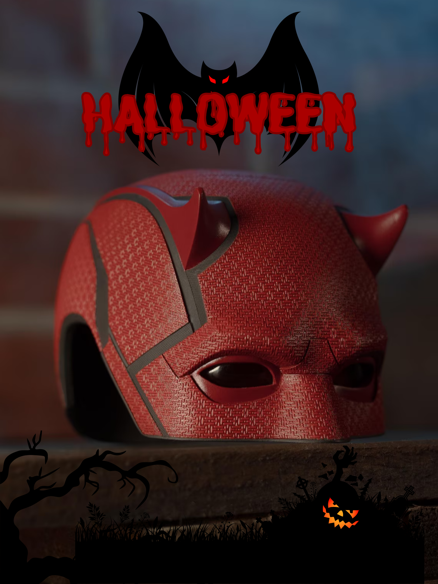We have recently updated the design of our Daredevil helmet, and we are now confident that it is the ultimate Daredevil helmet available. In the redesign process, we made significant improvements to bring it closer to the original. We have enhanced the eye slits, horns, nose, and overall shape of the helmet. The most noteworthy change is that it now consists of two separate pieces, just like in the original design. To achieve this enhanced design, I collaborated with talented artists and the crew from the Daredevil series, as well as the team behind 'Born Again' 😉 We also worked closely with the creators of the show to ensure we captured the perfect color tone.