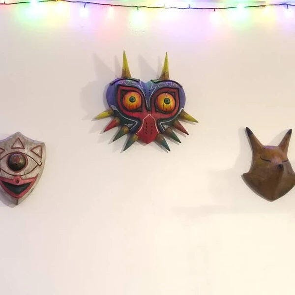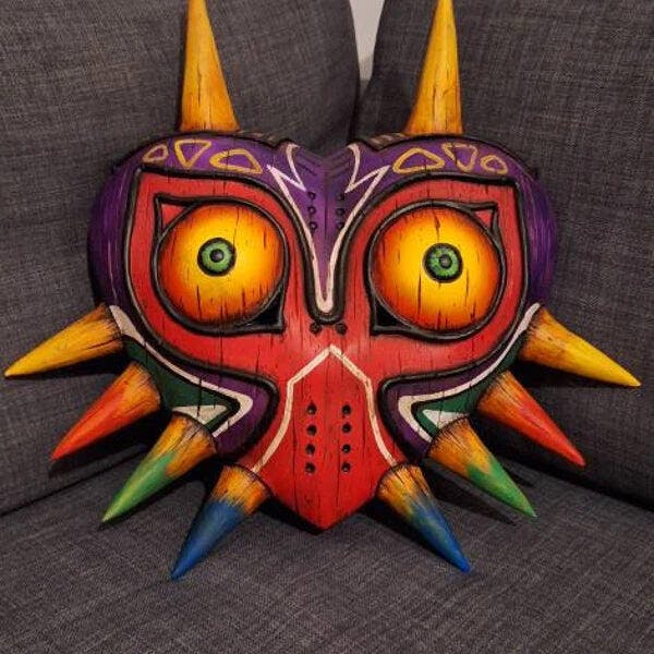- This is a The Legend of Zelda: Majora's Mask inspired wood like collectible. It is detailed to have the most accurate paint job like the in-game mask, while still looking realistic and dark. It has a wooden and weathered texture to make it look like it's a dark and evil mask. Mask is made out of polyurethane resin with stainless steel rings on the back for hanging.